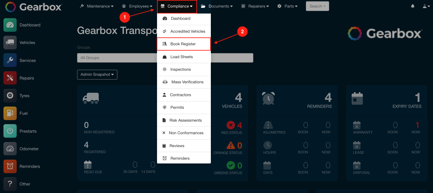 This article shows you how to enter you compliance books into Gearbox, by doing so it will help you keep track of when a new book is needed.