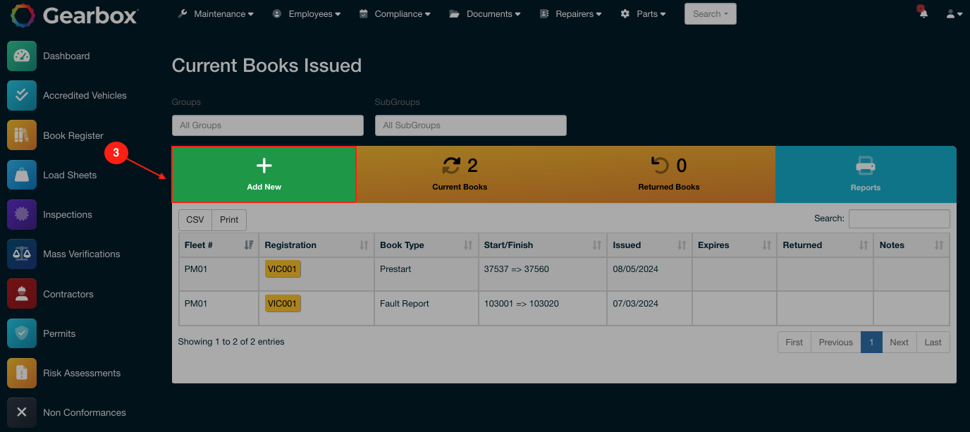 Overview Gearbox assist NHVAS requirements by providing a Book Register to record to allocation of Prestart, Fault Report, Load Sheets and other books to vehicles. It can also be used for tracking intercept report books, hover there is a dedicated ...